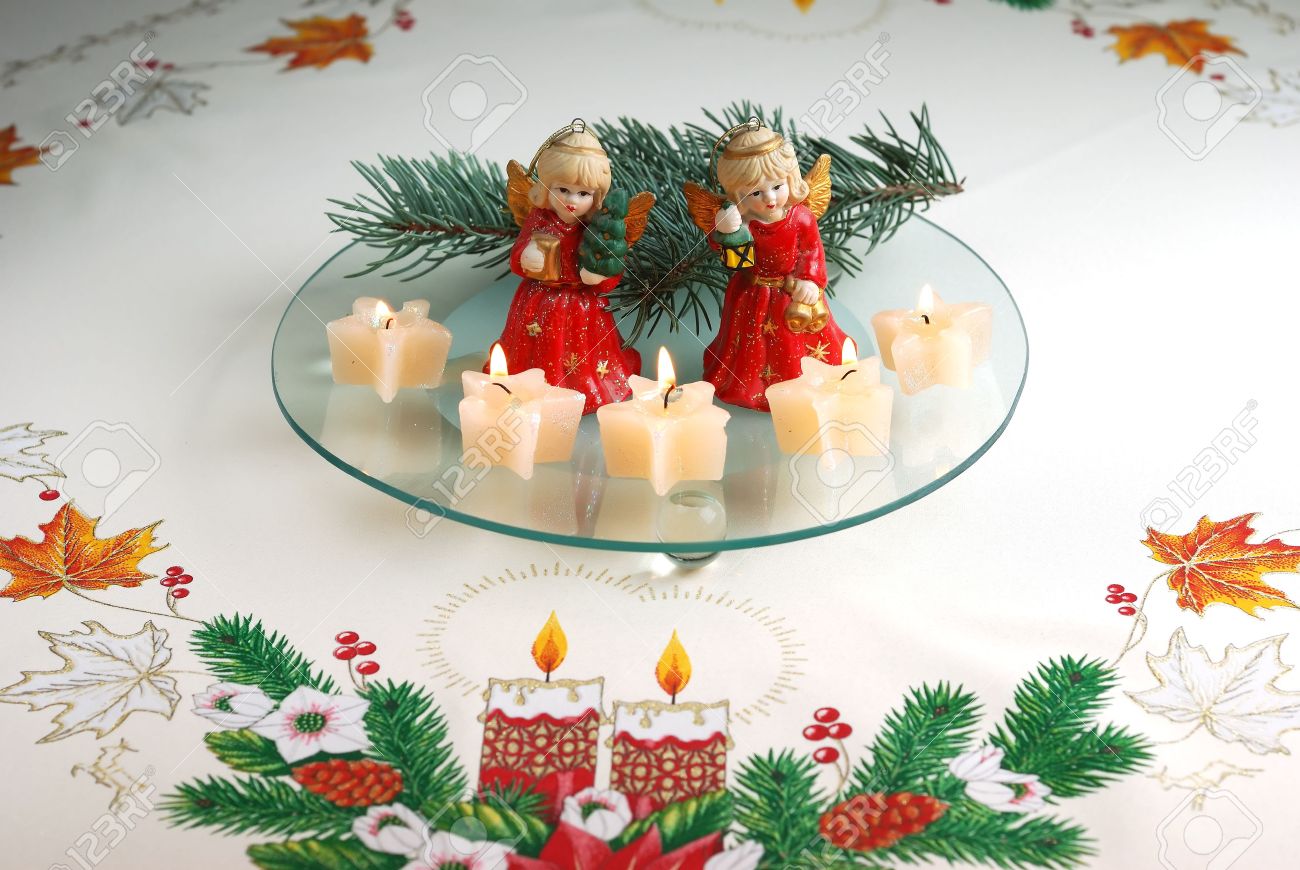 Christmas Angels Decorations On Crumb Cloth Stock Photo Picture