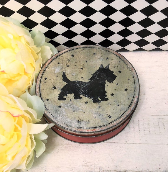 Shabby Small Scottie Dog Tin Box Antique Farmhouse Decor Etsy