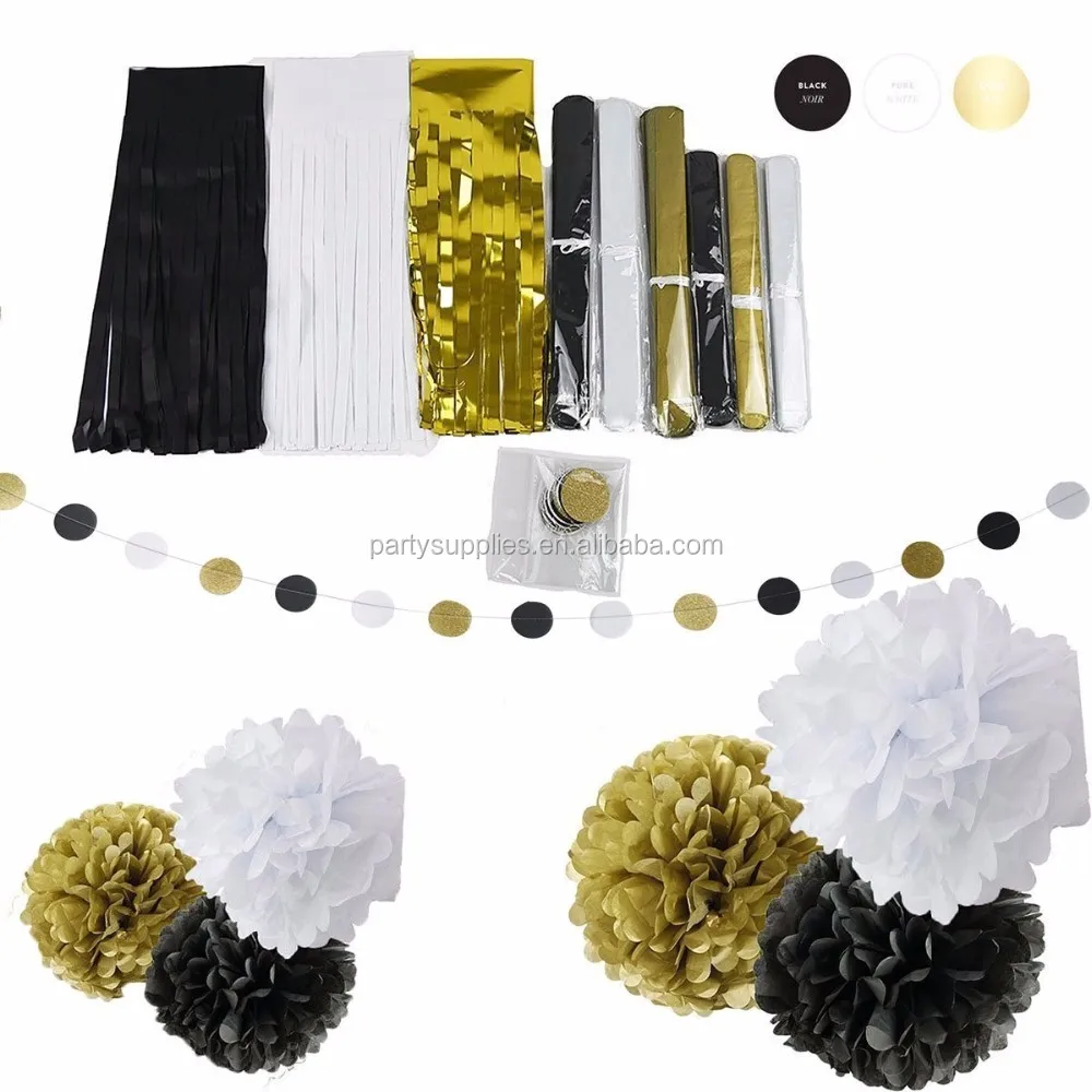 Black Gold Party Decorations Pom Poms Tissue Paper Lanterns For