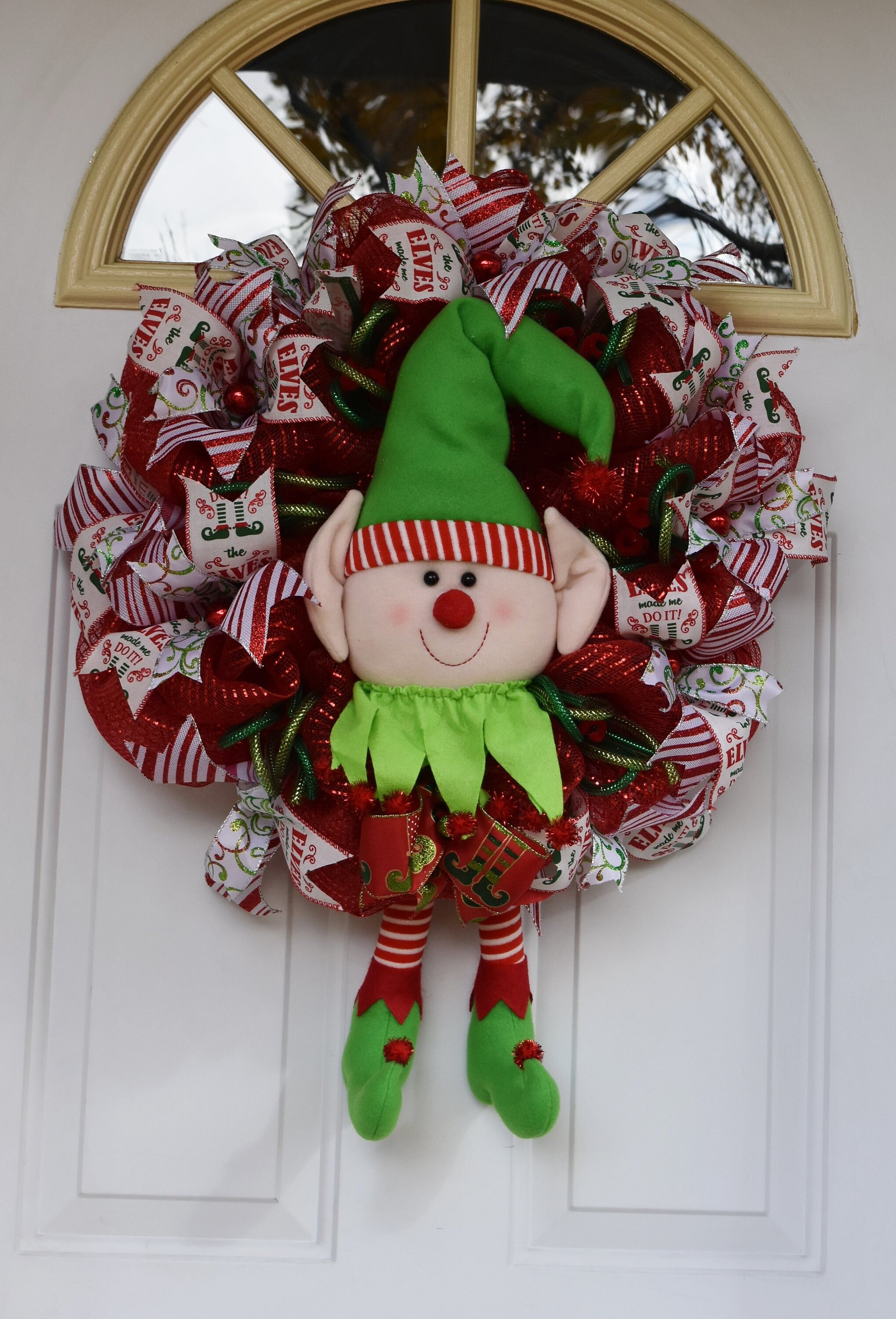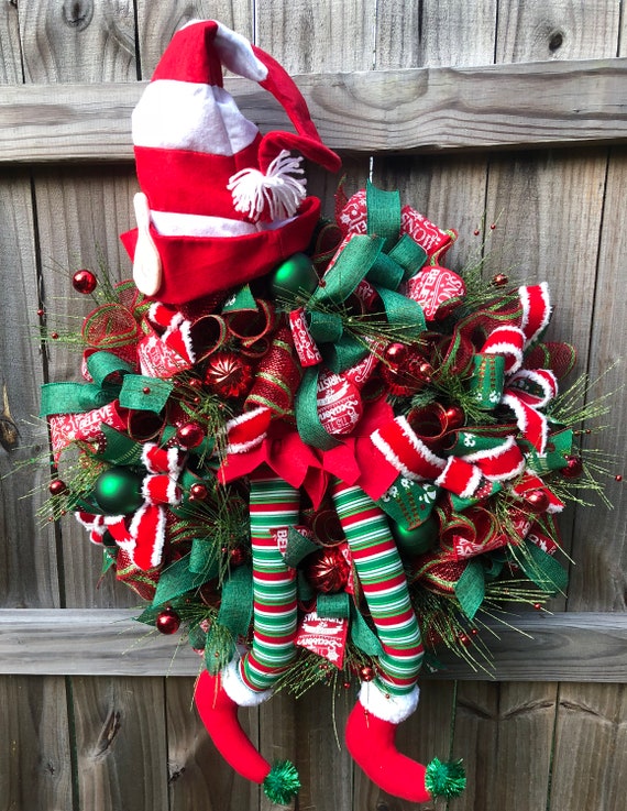 Christmas Wreath Elf Wreath Christmas Decor Holiday Wreath Etsy