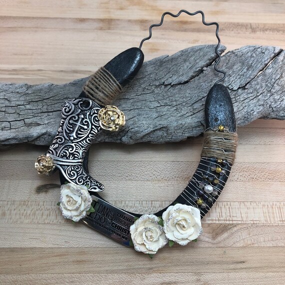 Horseshoe Art Decorated Horseshoes Western Decor Horseshoe Etsy