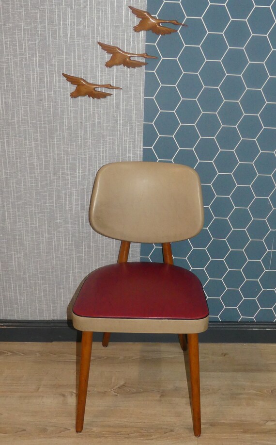 50s Dining Chair Decorative Chair Desk Chair Beige Seat Red Etsy
