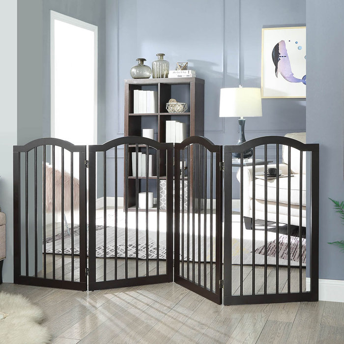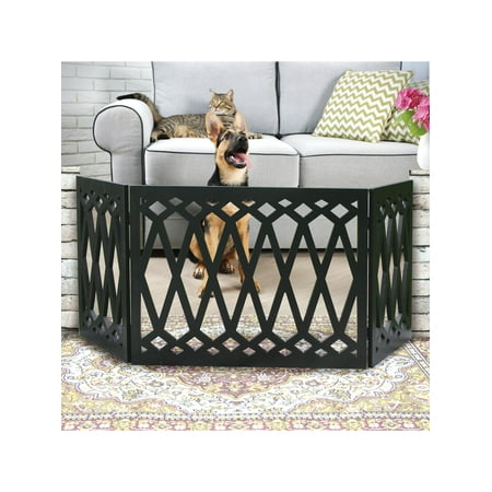 Decorative pet gates. Their patent pending stability leg design allows the 3 panel hinged gate to be full extended to a maximum width without tipping over. If youre ready to purchase a pet gate for your home wayfair has a wide selection of pet gates in various colors and sizes. There are times when you might wish to confine even the best behaved dog to a single room such as when a repairman is needed or when guests with small children visit.