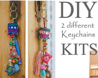 Boho Tassel Keychain Diy Keychain Diy Craft Kit Sewing Kit Etsy