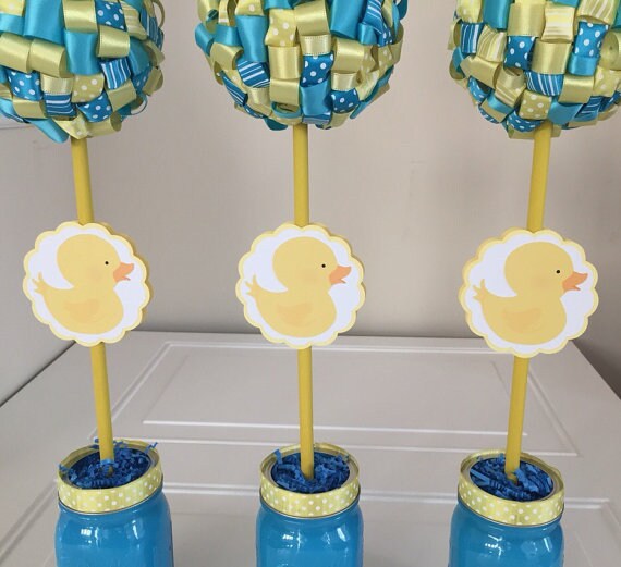 Yellow Duck Baby Shower Duck Ribbon Topiary Centerpieces One Etsy