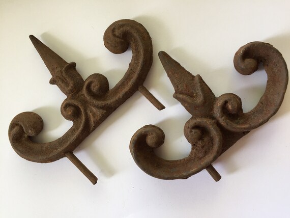 2 Antique French Cast Iron Finials Fleur De Lis Decor Etsy