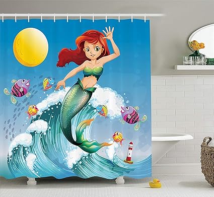 Amazon Com Yvsxo Mermaid Decor Shower Curtain Set Illustration
