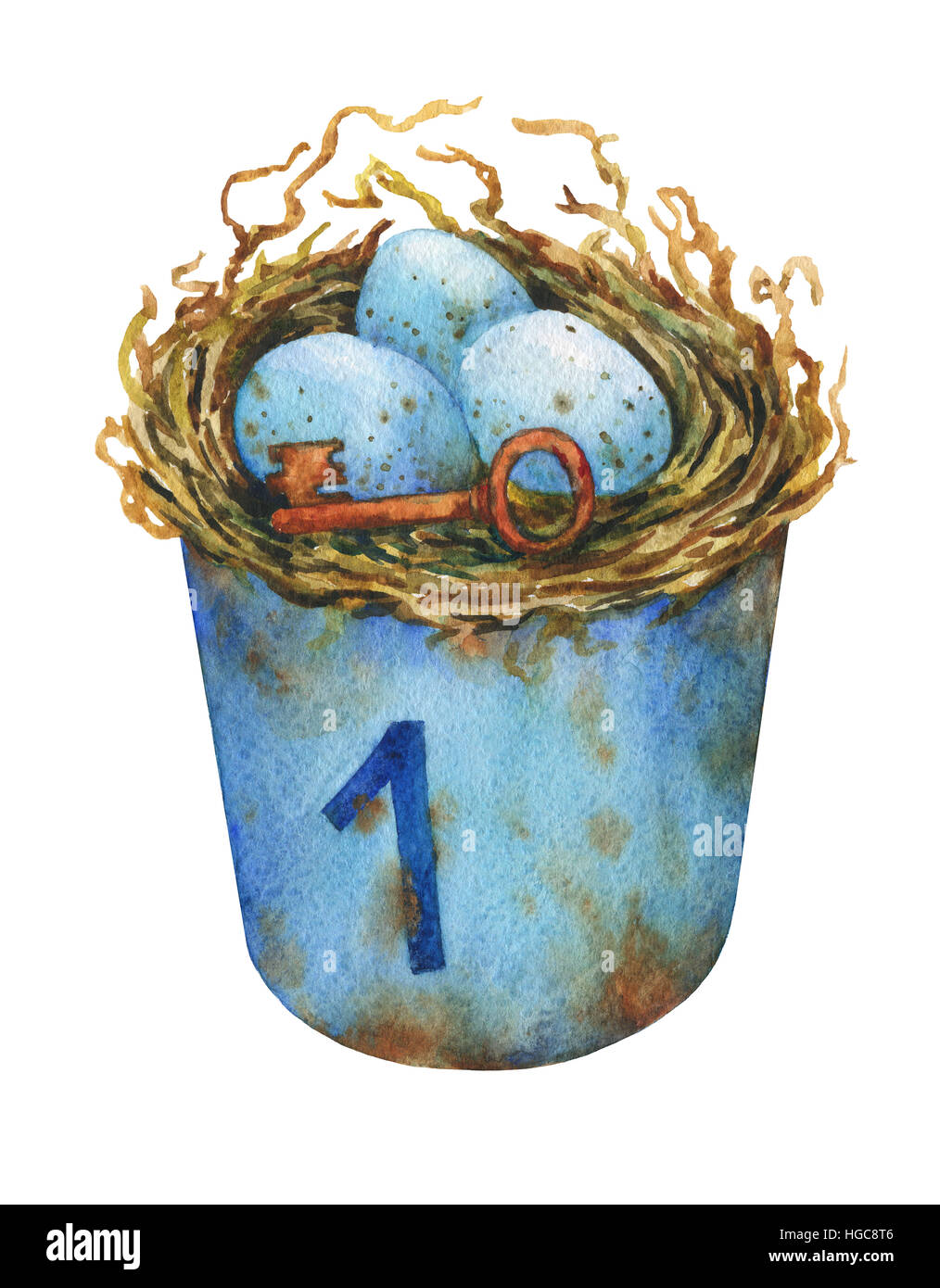 Bird Nest With Blue Eggs In A Rusty Metal Buckets Home Decor For