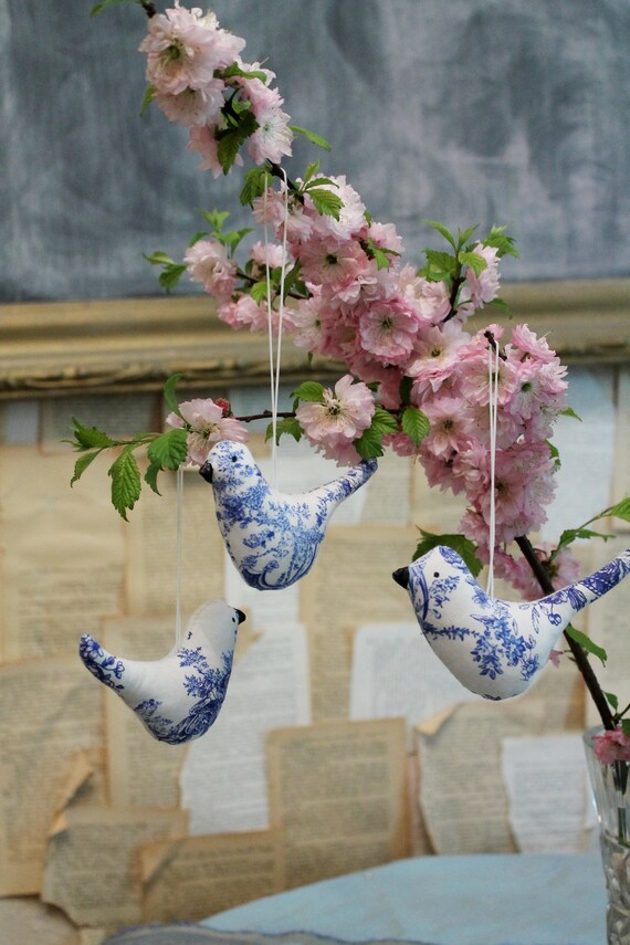Bird Ornaments Shabby Chic Decor Blue Toile De Jouy Bird Tilda Etsy