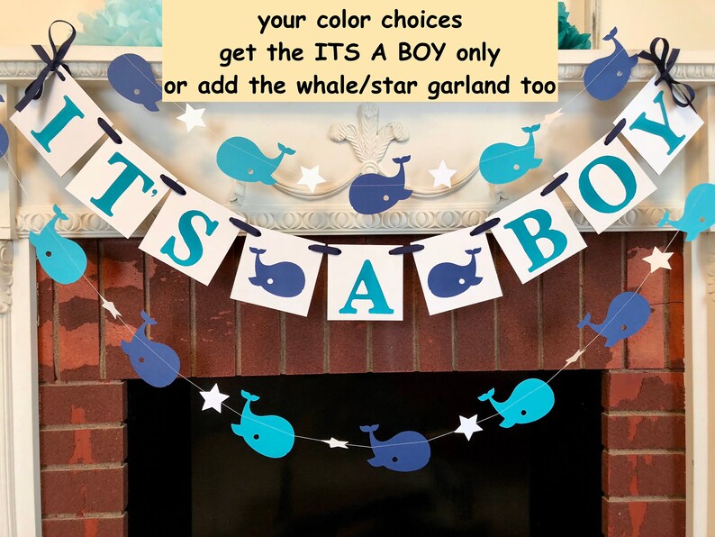 Whale Baby Shower Decorations Navy And Teal It S A Boy Etsy