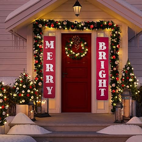 Amazon Com Merry Bright Christmas Banner For Christmas
