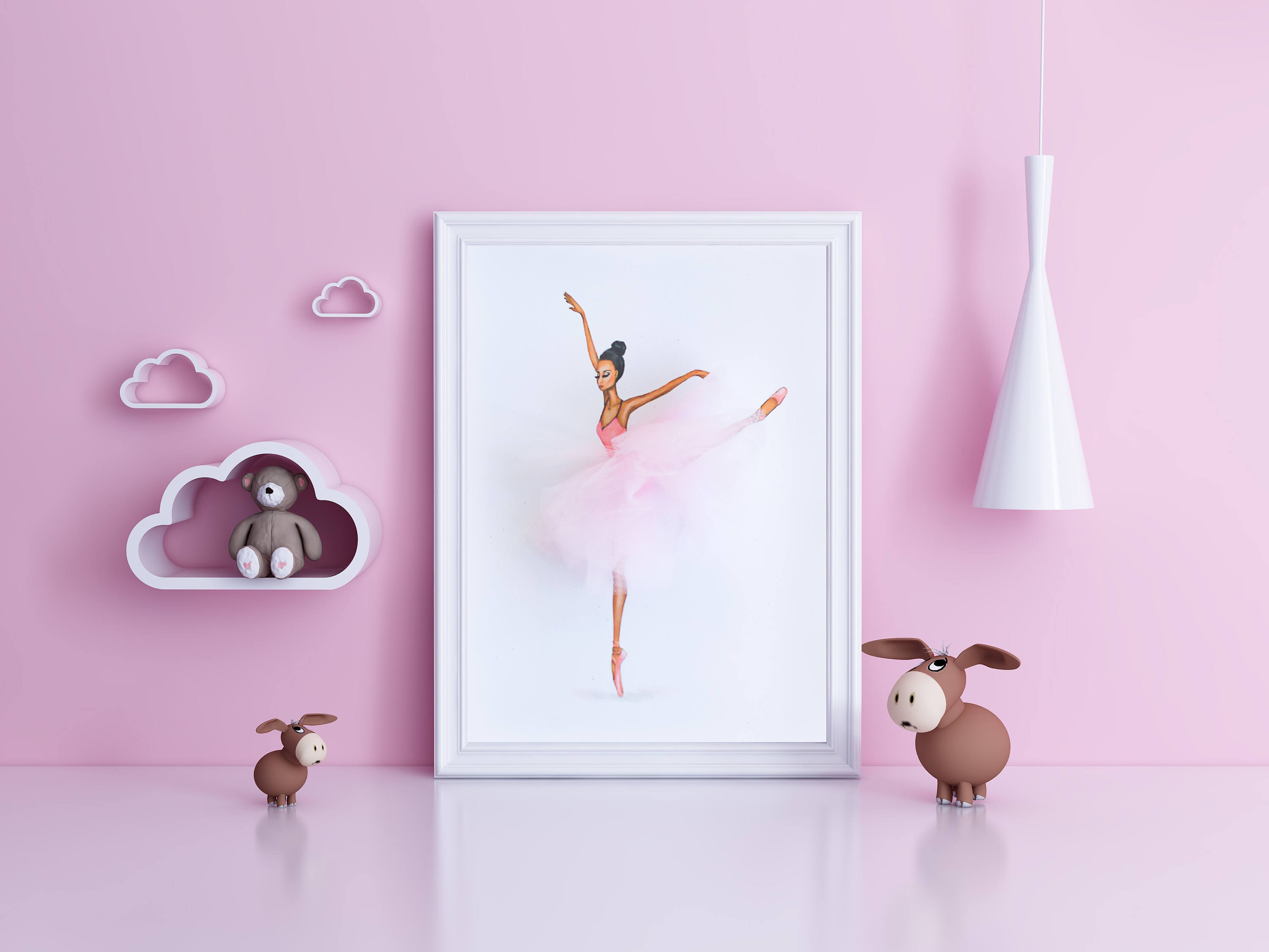 Ballerina Wall Art Baby Girl Gift Pink Baby Room Decor Wall Etsy
