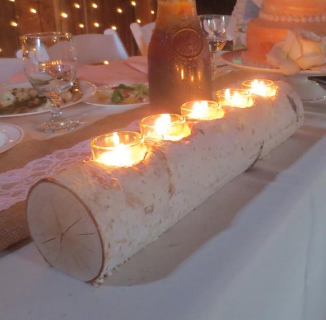 Birch Log Votive Light Candle Holder Wedding Home Decor Table