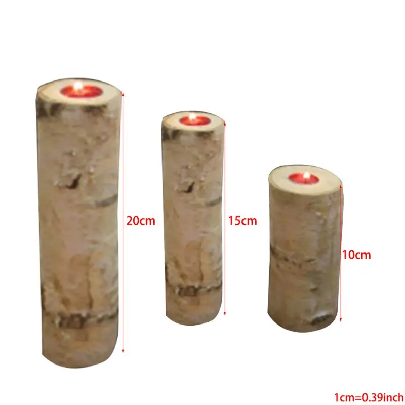Set Of 3 Real Birch Log Tea Light Candleholder For Christmas Log