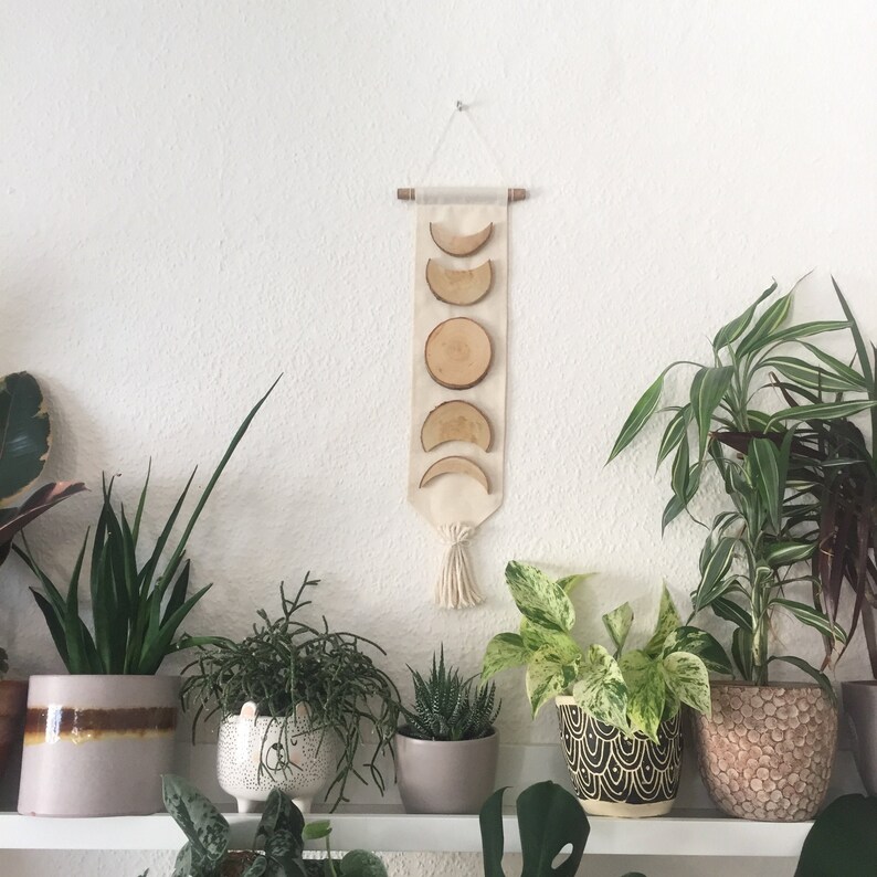 Wooden Moon Phase Birch Log Slice Fabric Tassel Wall Hanging Etsy