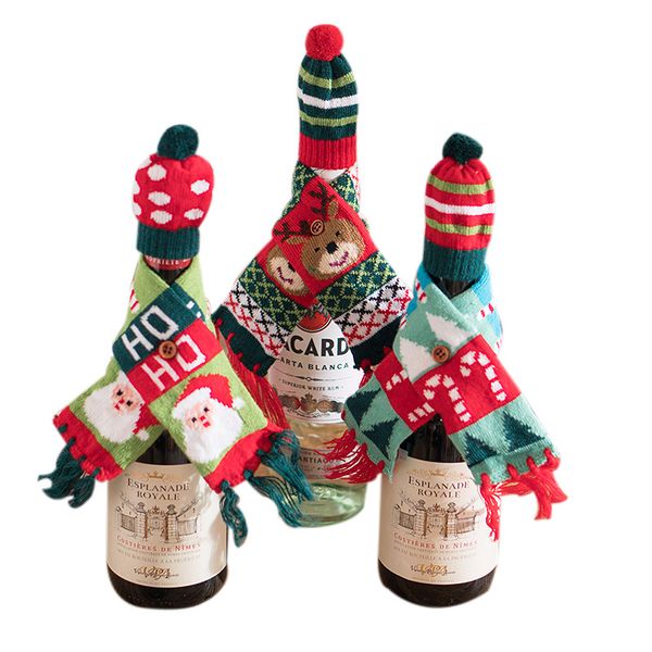 New Christmas Bottle Decorations Creative Knit Scarf Hat Set