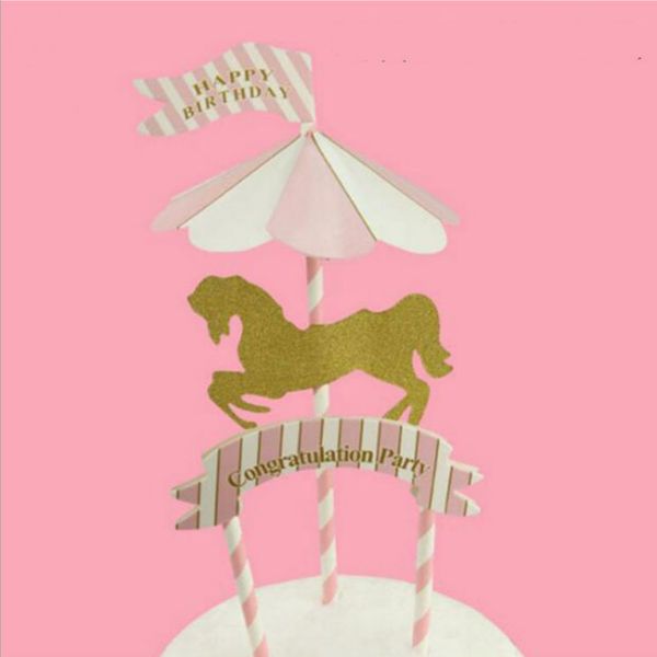 Carousel Party Cupcake Topper For Happy Birthday Baby Shower Party