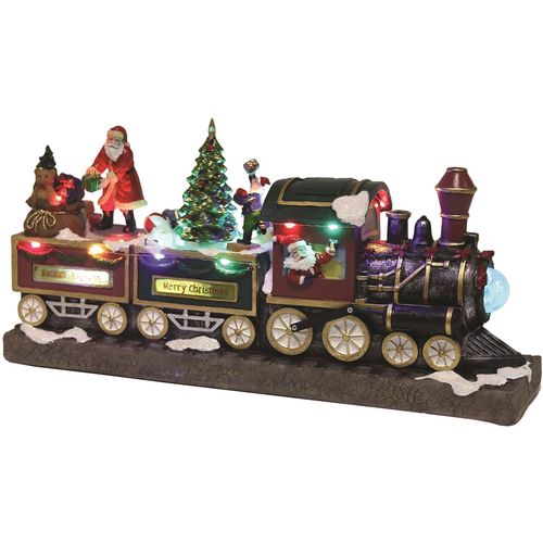 Polyresin Christmas Decoration 9 Led Train Station With Rotating