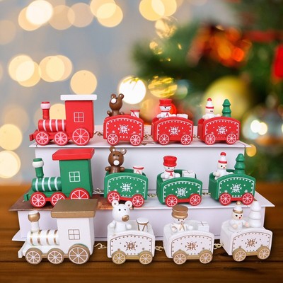 2019 Christmas Train Wooden Train Model Vehicle Painting New Year