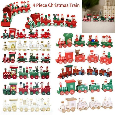 4 Pieces Wood Christmas Xmas Train Decoration Decor Gift Mini