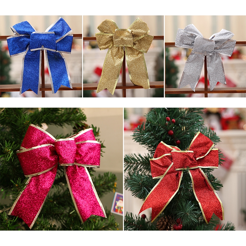 2pcs Glitter Bow Knot Christmas Tree Hanging Ornament Gift Present