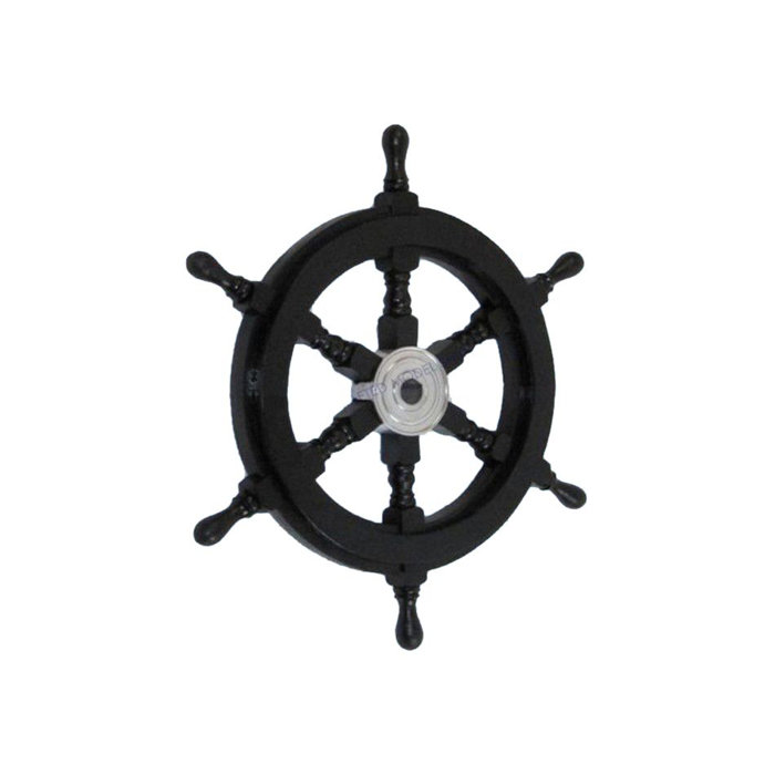 Mythrojan Wooden Black Pirate Ship Wheel With Solid Chrome Center Naut