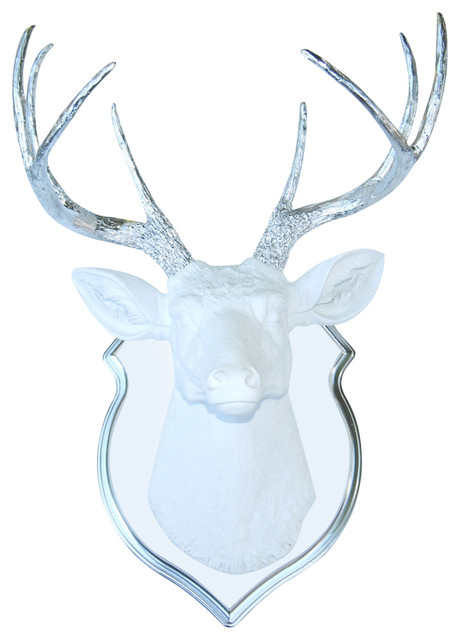 Faux Deer Mount With Matching Shield Wall Decor White Chrome