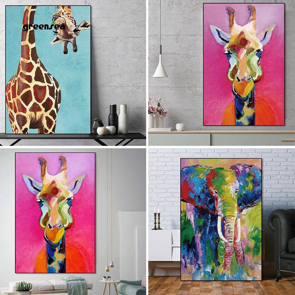 Greensea Elephant Giraffe Colorful Canvas Painting Wall Background