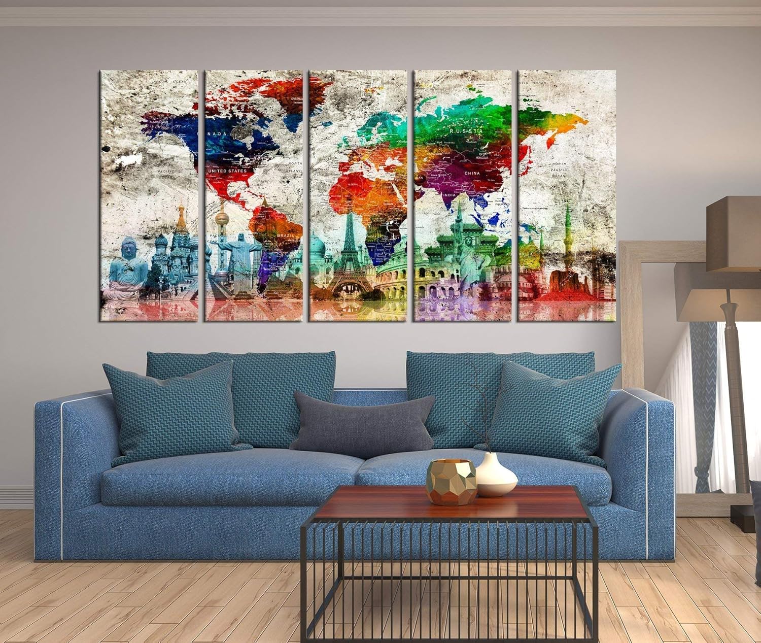 Amazon Com Wolrd Travel Map Wall Decor Framed 5 Panel Push Pin