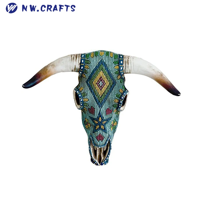 Colorful Resin Southwest Aztec Cow Skull Wall Decor Painted Art