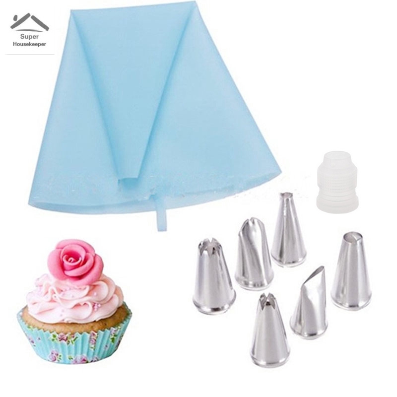 Shk 1 Blue Pastry Bag 6 Nozzles Cake Icing Piping Nozzles Cake