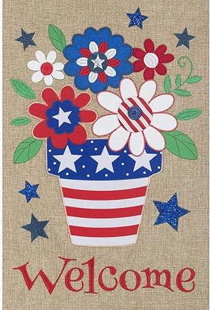 Amazon Com Custom Decor 4062fm Patriotic Flowers Pot Burlap