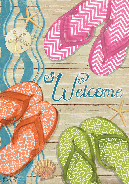 Coastal Flip Flops On Boardwalk Welcome 12 X 18 Inch Garden Flag