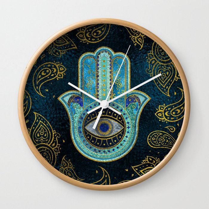 Decorative Hamsa Hand With Paisley Background Wall Clock By