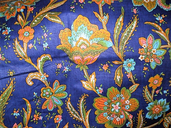 Navy Blue Floral Fabric Decorative Fabrics Etsy