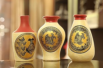 Buy Craftbell Miniature Madhubani Table Pots In Terracotta Golden