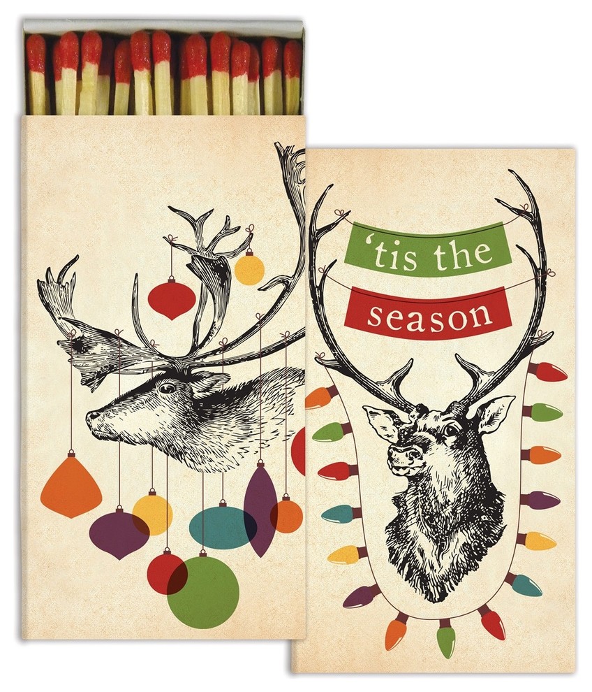 Holiday Reindeer Stag Ornament Matches Retro Lights Vintage