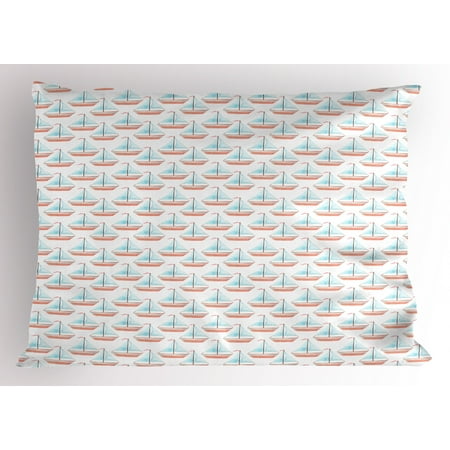 Sailboat Pillow Sham Nautical Illustration Of Watercolored Marine