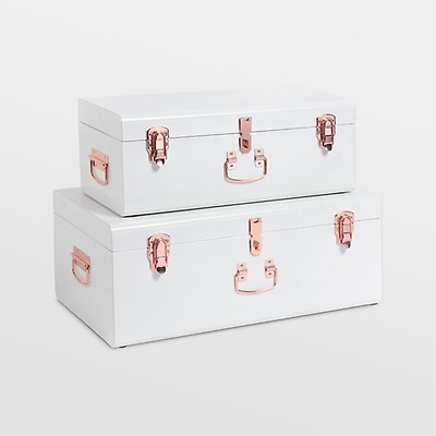 Beautify Cream Vintage Style Steel Metal Storage Trunk Set