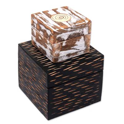 2 Artisan Crafted Decorative Wood Box Pair From Bali Lombok Duo