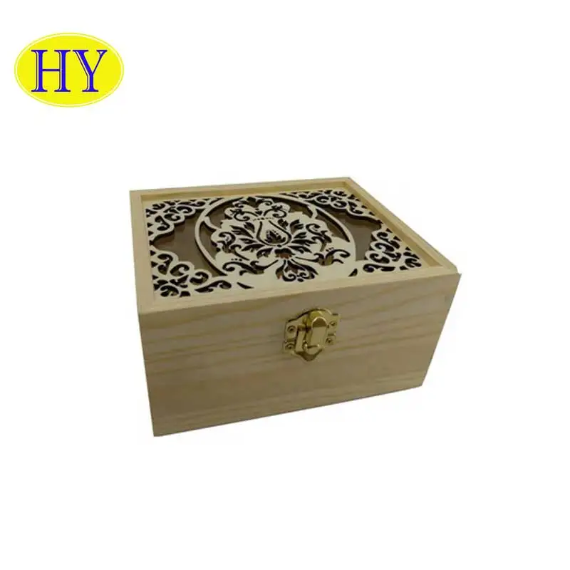 Promotion Unfinished Carved Decorative Wood Boxes With Glass Lid