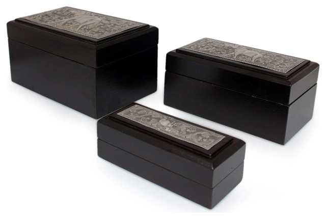 Siamese Elephant Nickel And Wood Boxes 3 Piece Set