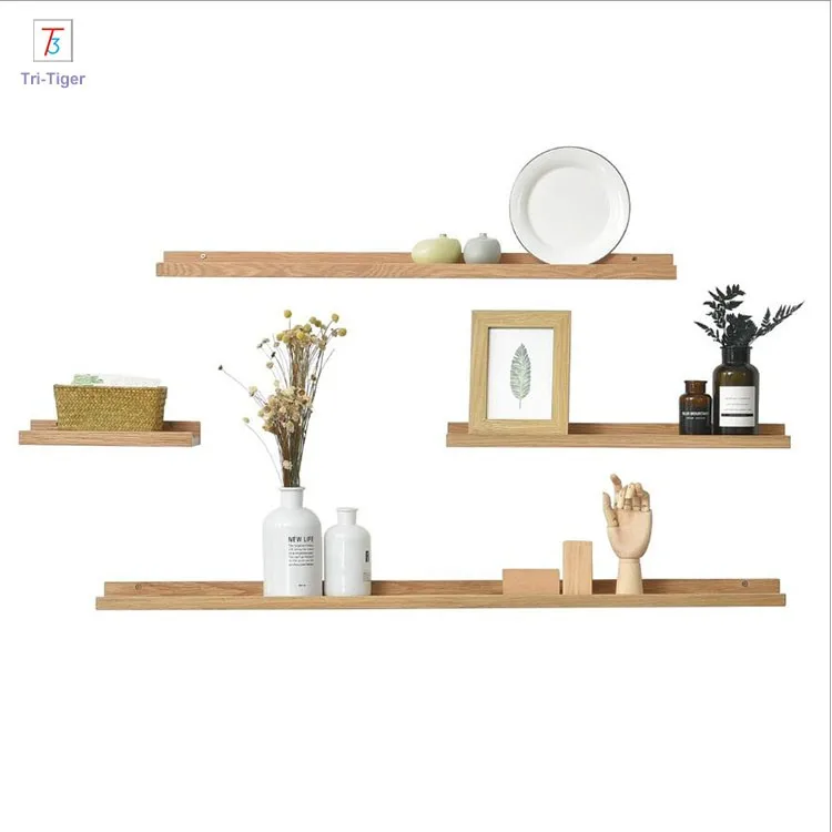 Solid Floating Wall Shelf Line Style Decorative Wall Wood Shelves