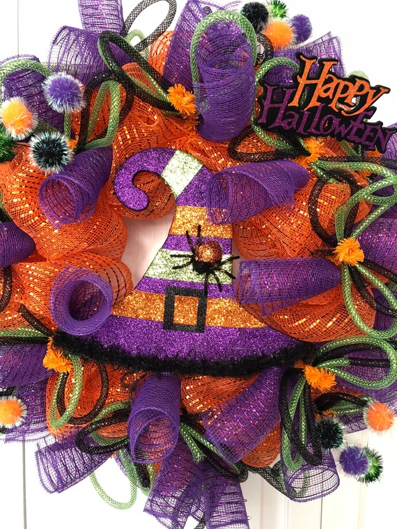 Halloween Wreath Witch Hat Wreath Halloween Decoration Etsy