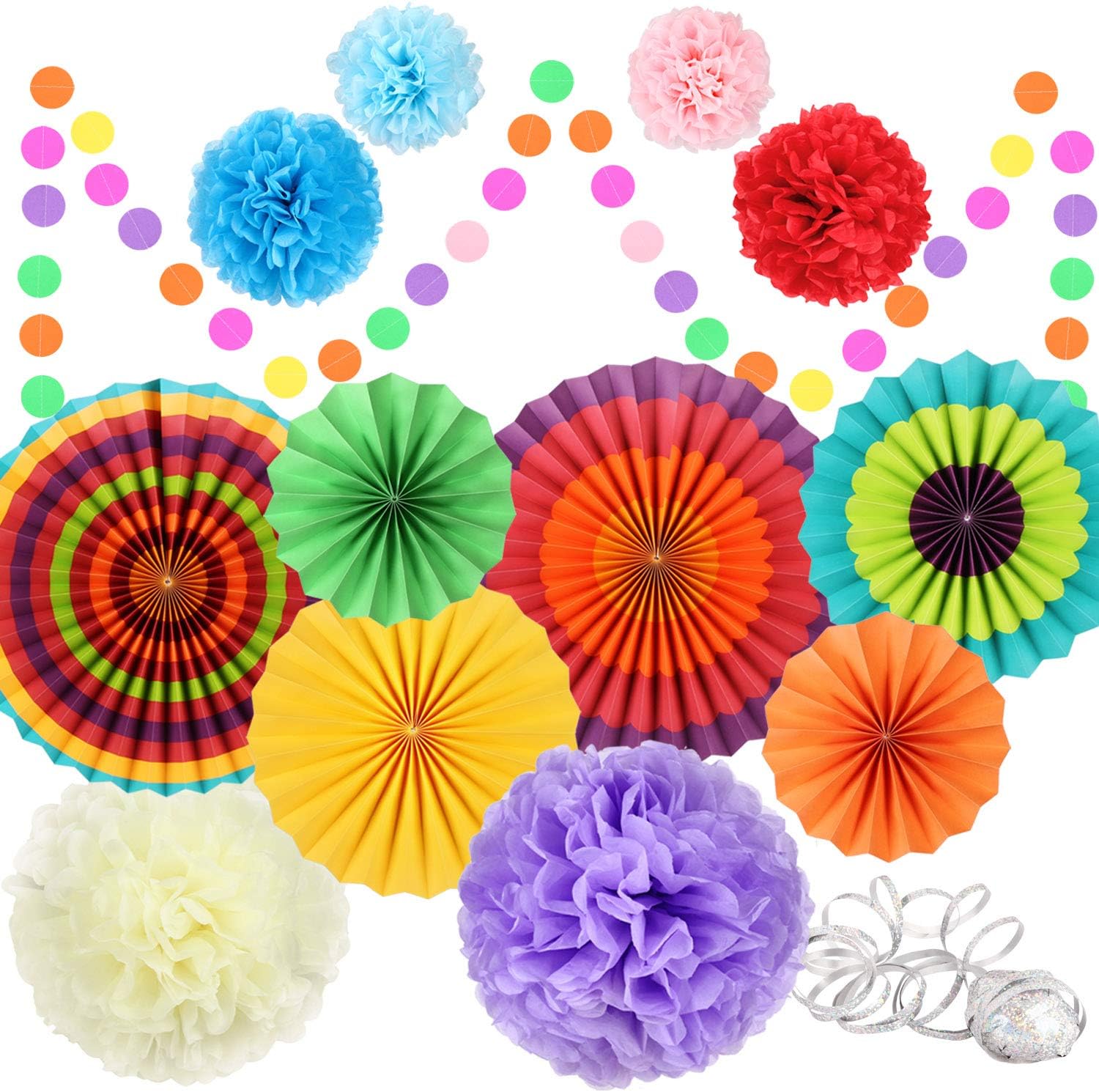Amazon Com Set Of 12 Vibrant Colorful Hanging Paper Fans Rosettes
