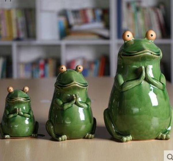 2020 Ceramic Creative Lucky Green Frog Statue Home Decor Craft