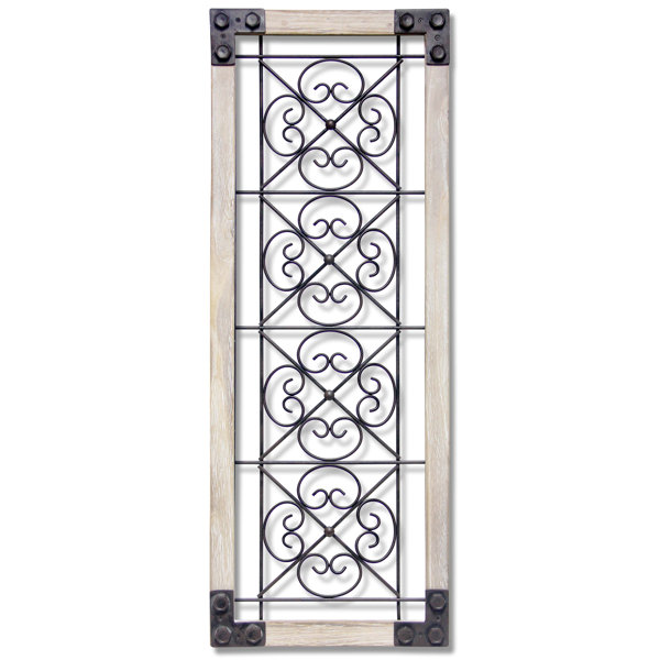 Metal Gate Wall Decor With Wood Backing Product Wall