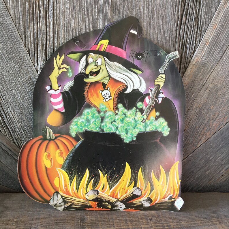 Vintage Halloween Decoration Witch Pumpkin Die Cut Cardboard Etsy