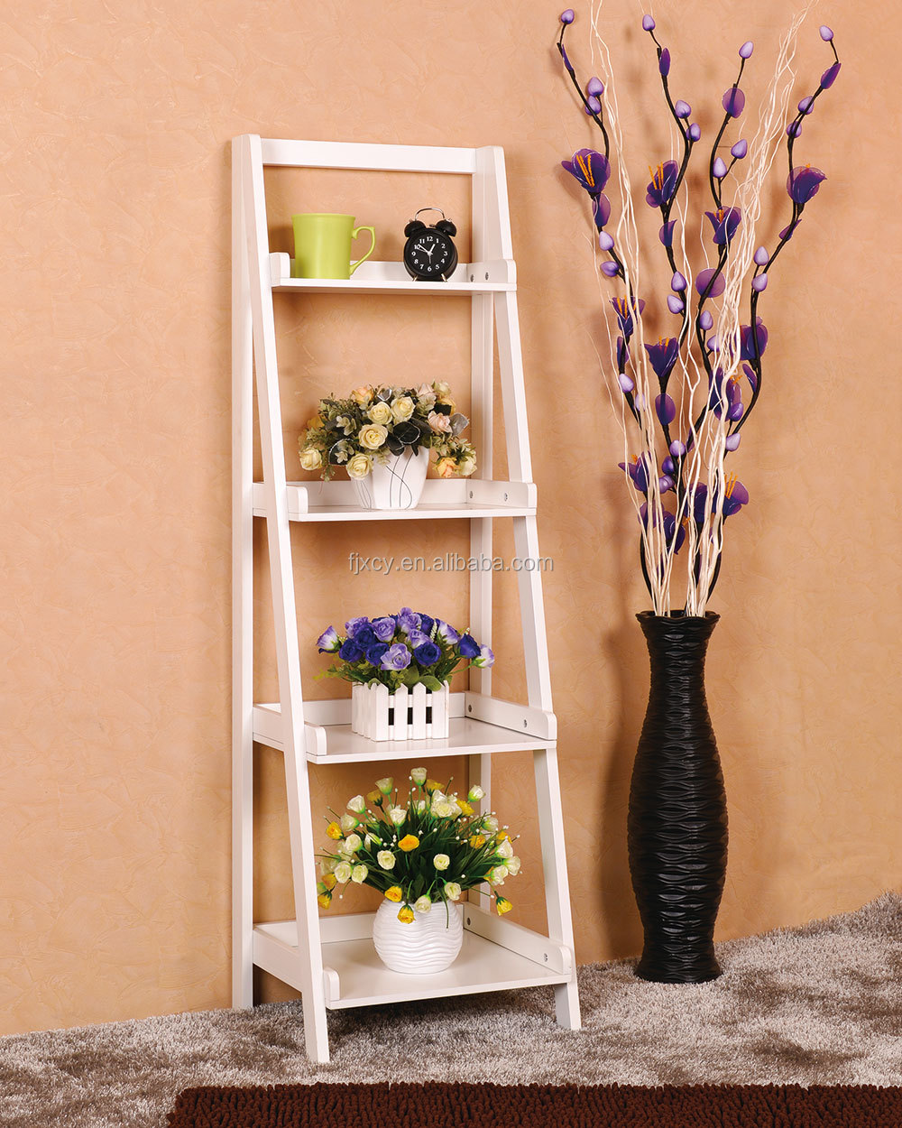 Hot Sell Home Decor Cheap Quality 5 Tier White Wood Ladder Shelf