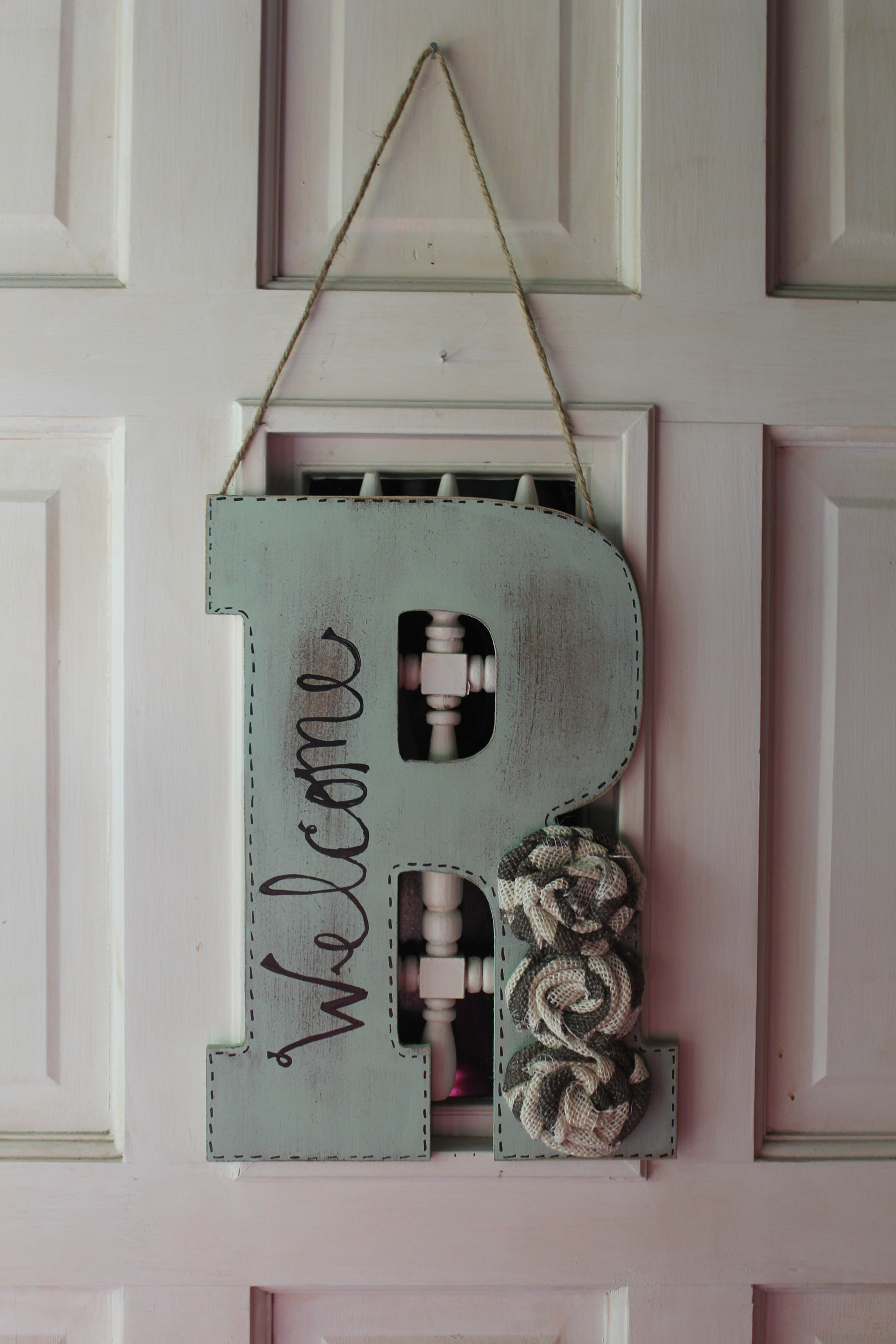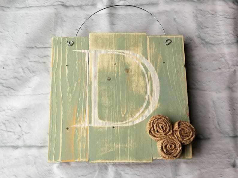 Mint Initial Door Hanger With Chevron Burlap Distressed Door